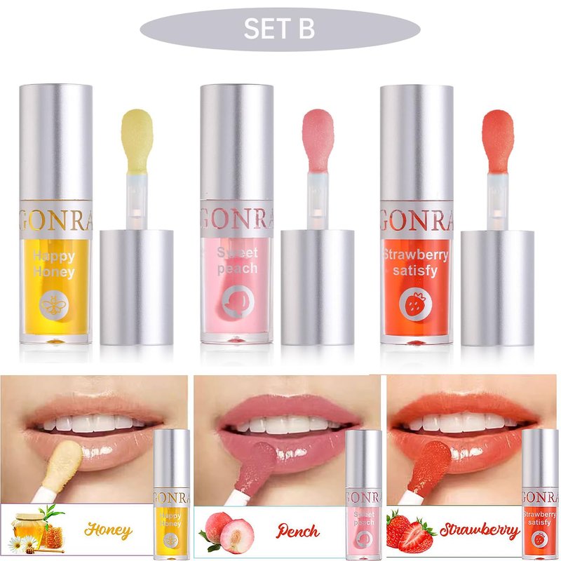 MYUANGO Hydrating Lip Oil Set 3 Colors -Moisturizer Long Lasting Nutritious for Chapped and Flaky Lips Shiny and Vegan Lip Gloss with Big Brush Head (SET B, 3pcs)