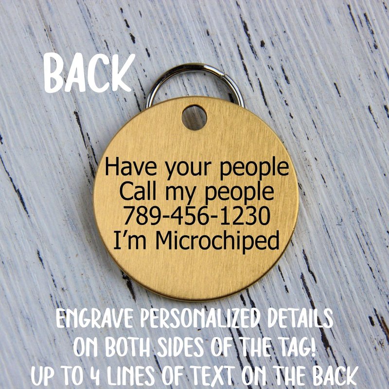 - Double-sided pet ID tags for complete customizable info - We present excellent front designs and also center your contact info on the back of the tag.