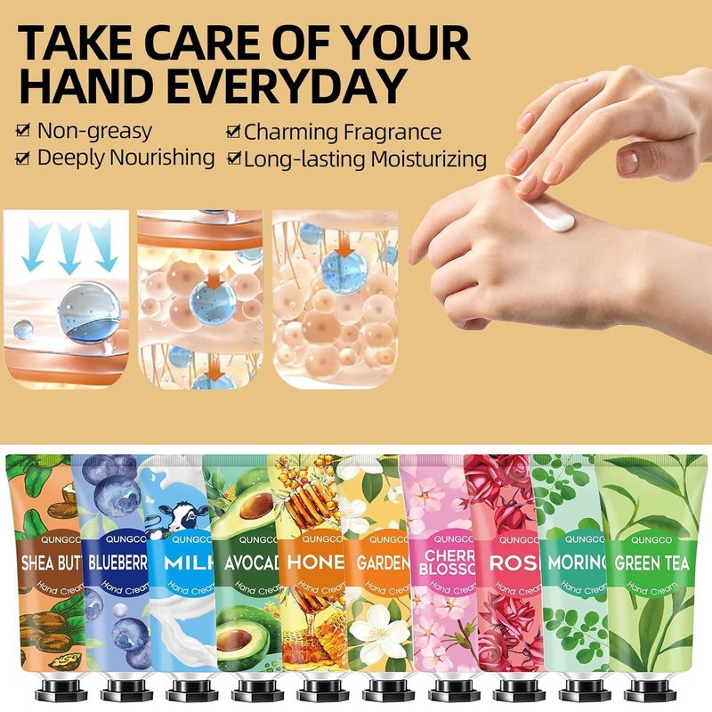 - 14 PACK Hand Cream Gifts for Women and Grils:Rose,Moringa,Cherry Blossom,Gardenia,Green Tea,Avocado,Honey,Milk,Berry,Shea Butter.Pick and choose your favorite scent our 10 natural fragrances