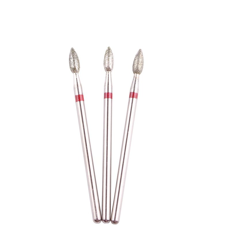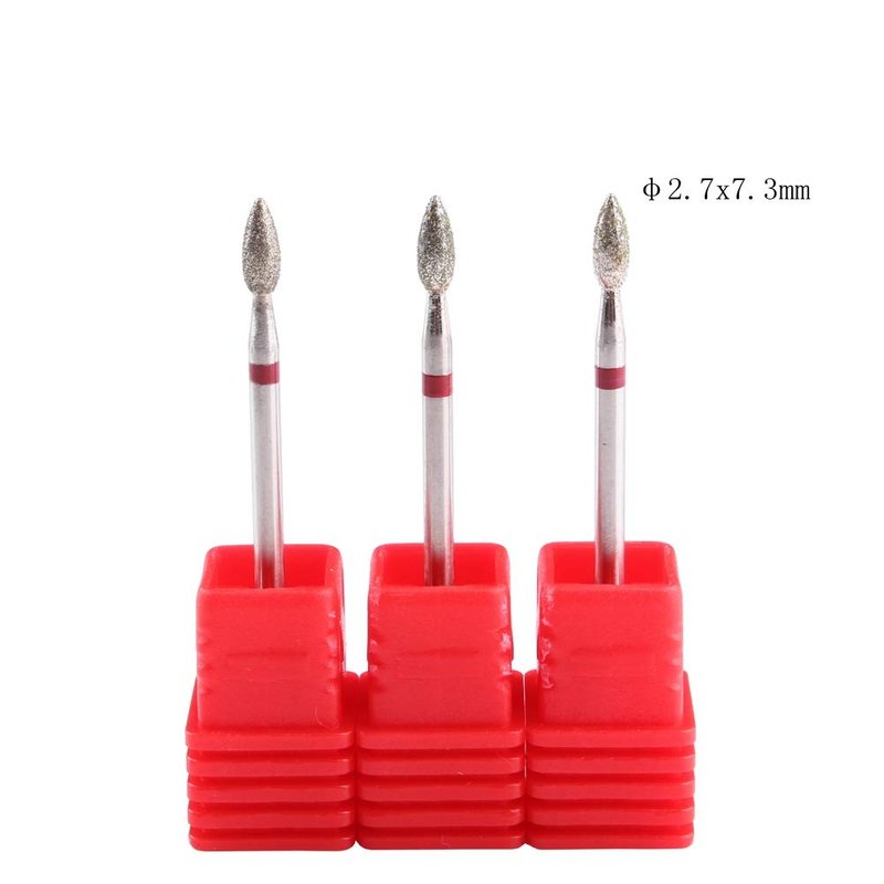 MZCMSL 3pcs Flame Shape Diamond Cuticle Clean Bits, 3/32 Shank Dry Manicure Drill Bits