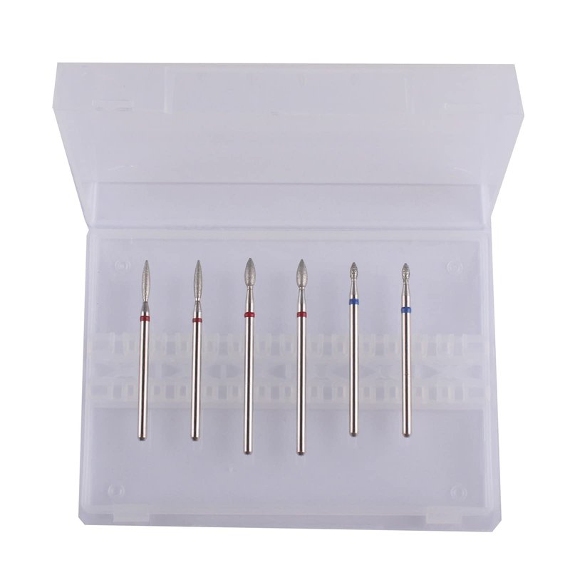 MZCMSL 6pcs Cuticle Drill Bits with Case, Pro Diamond Flame Bit for Russian Manicure,3/32 Shank efile Bit Set