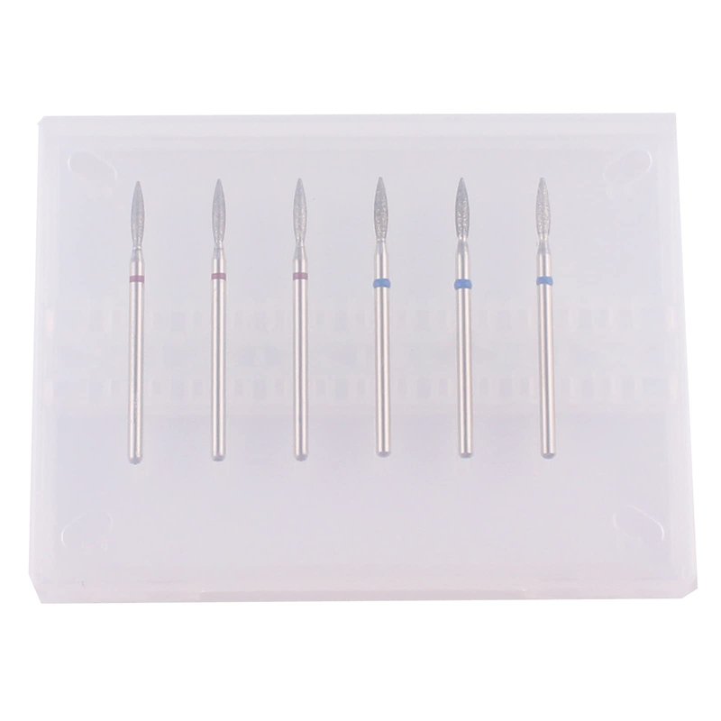 MZCMSL Flame Shape Diamond Cuticle Nail Drill Bit Set, 6pcs Pro Manicure Drill Bits for Nail Prep, 3/32 Shank efile Bit(Fine+Medium)
