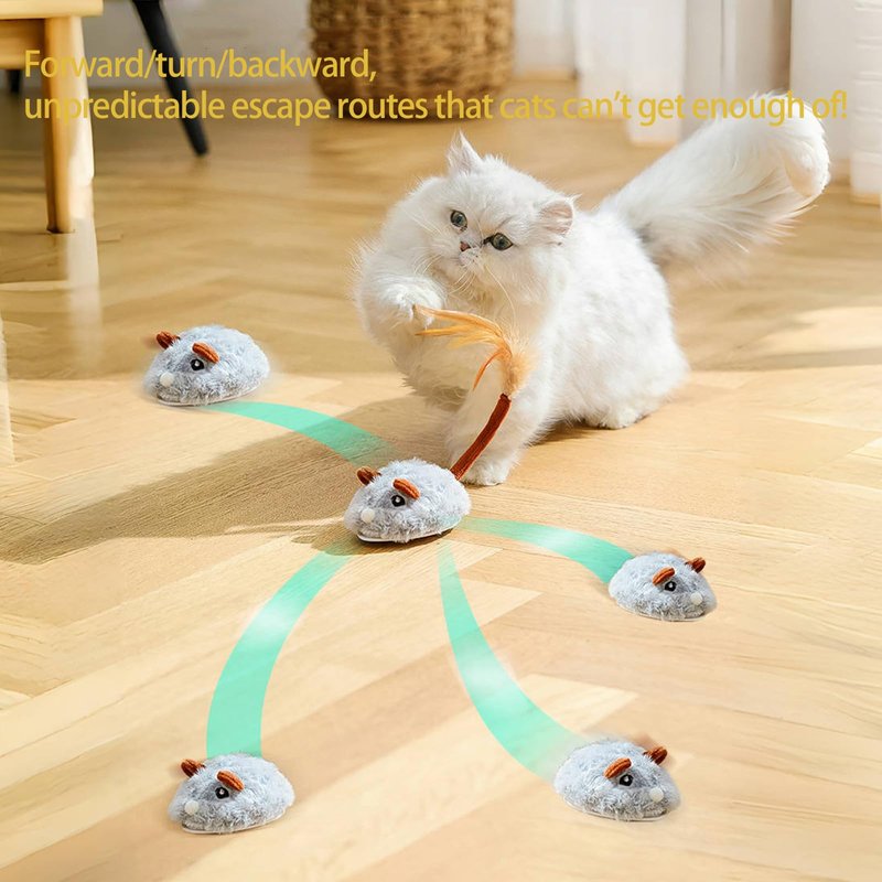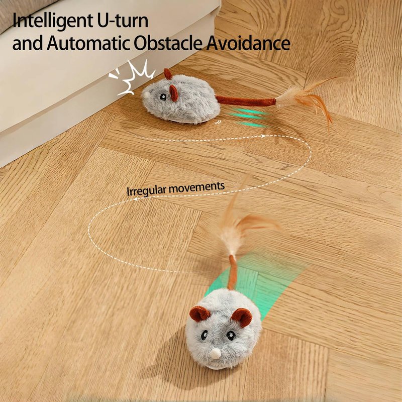 - 🐱 REAL FEATHERED TAIL, PLUSH DESIGN - Smart moving mouse cat toy features a plush, long-haired design that closely resembles a real mouse. It stimulates your cat's natural hunting instincts and provides a more engaging and satisfying play experience.