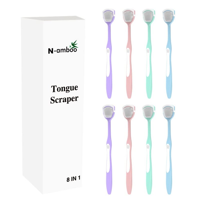N-amboo Tongue Scraper Tongue Cleaner Tongue Brush Two Sides Four Colors 8 Pieces
