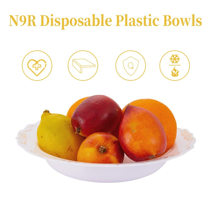 - HIGH QUALITY: Different from ordinary disposable bowls, N9R heavy duty plastic bowls are made of thickened material, using 360° integral molding and you don't have to worry about them being deformed during use. With the smooth edge, N9R disposable soup bowls has comfortable touch, so you don't have to worry about scratching your hands. Both hot and cold food can be served.