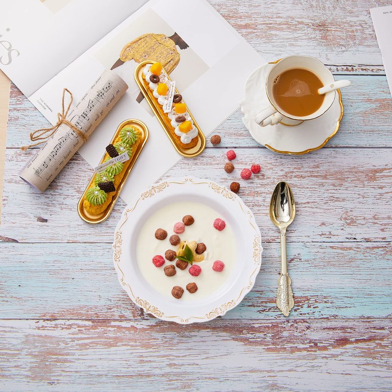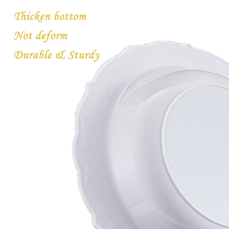 - PERFECT DESIGN: N9R disposable soup bowls are inlaid with golden embossing on the sides, delicate and elegant, and white gold can be suitable for various occasions. The side of the bowl is 1.2 inches wide, so you can easily carry it.