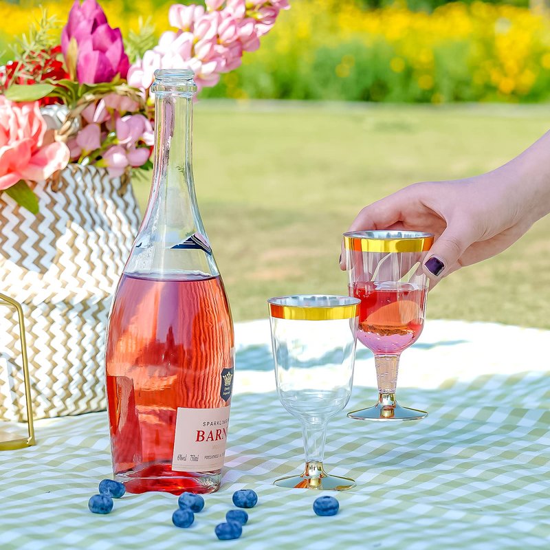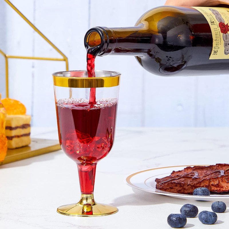 • PERFECT DESIGN: N9R plastic wine glass has a beautiful shape design and topped with a sophisticated gold rim. The 6oz capacity allows the wine to blend with the air. Its smooth rim is gentle on your lips and it is not only suitable for red and white wine, but also for various beverages.