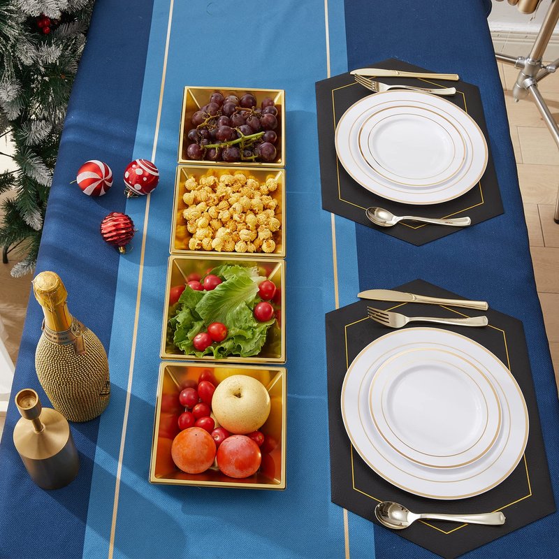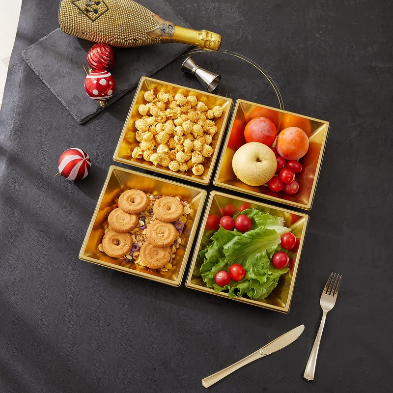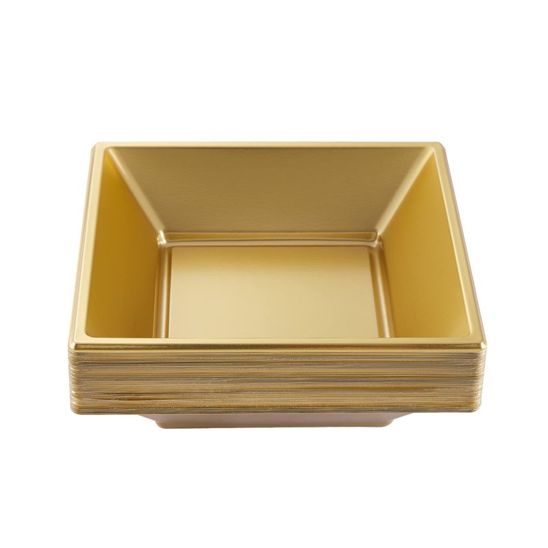 N9R 50 Count Gold Square Plastic Serving Bowls, 12 Oz Disposable Square Bowls for Candy Snake, Salad Bowl Perfect for Party Wedding Birthday