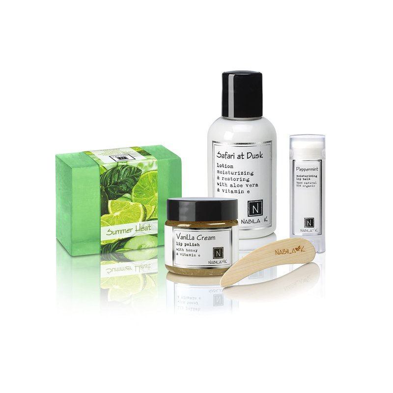- Give the gift of healthy, radiant skin with a Nabila K luxury box! Our Summer Safari Kit includes products carefully selected to target environmental damage to your skin. Gently cleanse your body and face while restoring and locking in moisture.