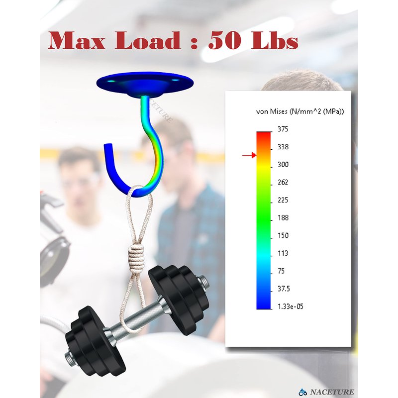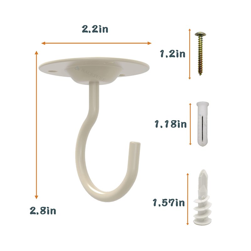 EASY INSTALLATION - Simple ceiling hook that is easy to fasten and install with four screw holes which allow for the hook to be securely fastened. The installation can be completed in just a few simple steps: 1. Make a mark; 2. Drill holes; 3. Insert the anchor; 4. Tighten the screw.