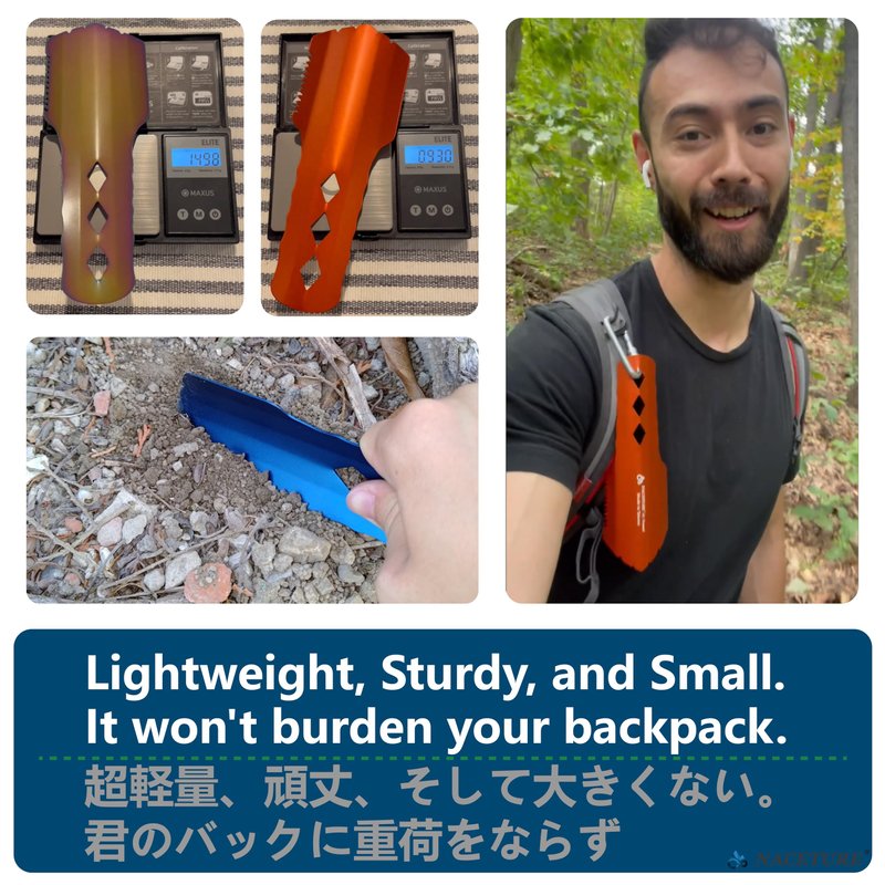- โ DIG A HOLE QUICKLY AND EFFECTIVELY - Made specifically for ultralight backpackers, this compact and lightweight ultralight multitool gear will be able to easily dig a hole into hard ground, through roots, and even through rocky soil without leaving any trace behind, which makes it perfect for most hikers and outdoor enthusiasts as well.