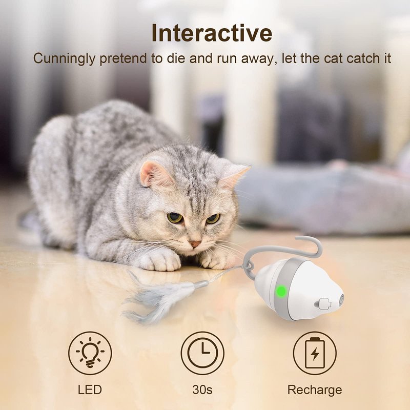NADESSA Interactive Cat Toy Mouse, Automatic Cat Toys with LED Lights Feathers
