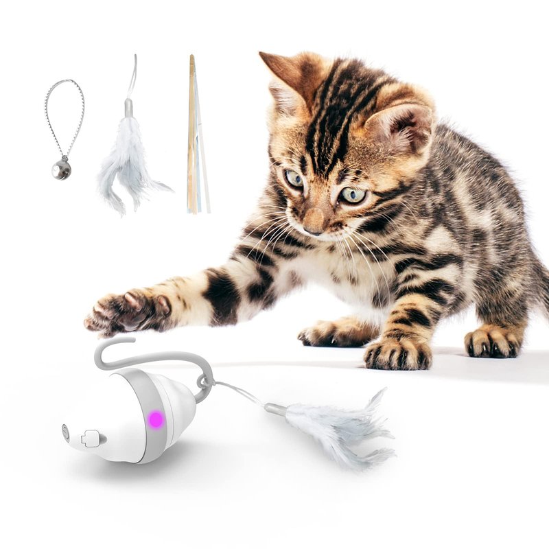 - 【Interactive Cat Toy】The cat toy that can unleash the cat's chasing nature. Its irregular running and automatic turning functions can mimic small animals, while the swinging feathers and bells attract the cat's attention and evoke its "hunting instinct."