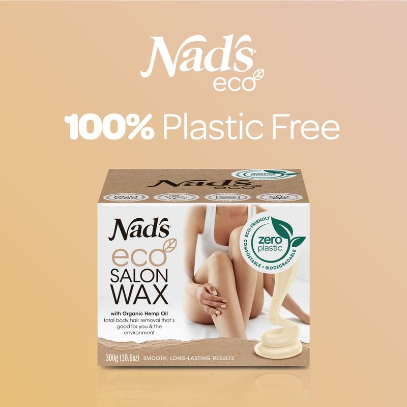 - Nad's Eco Salon hard wax kit is plastic free, compostable, biodegradable tub and wooden spatula, 100% recyclable packaging and vegan formula.