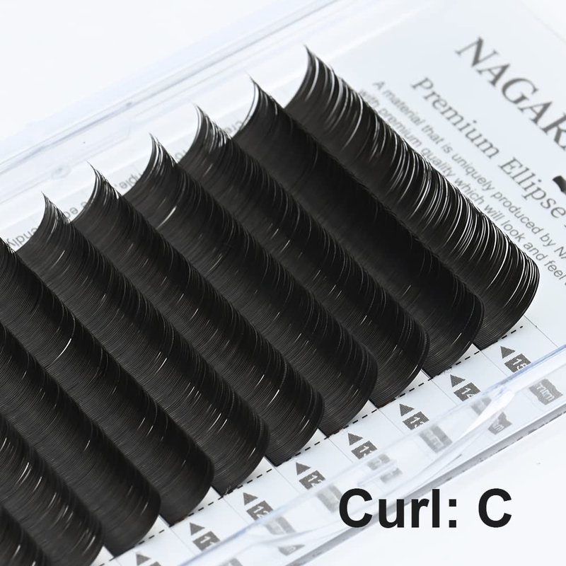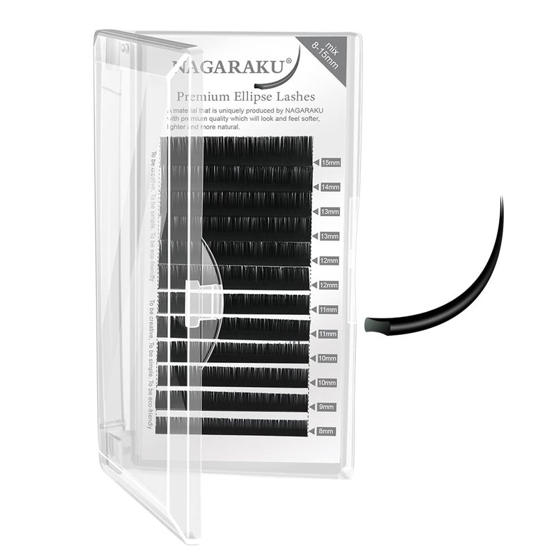 NAGARAKU Flat Ellipse Eyelash Extensions Supplies 0.15 C curl 8-15mm Mix Natural Grey Black Faux Mink Super Soft Split Tips Individual Lashes