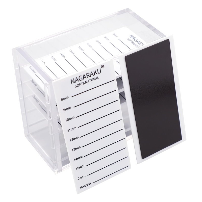 - MAGNETIC PLATE WITH SCALE: This eyelash extension box is equipped with a special MAGNETIC PLATE, which can be used as a lash tray and tweezers holder. The eyelash strip line pallets with scale markings from 8mm to 15mm, clearly indicating the millimeters, curl and thickness degrees for tidy and easy sorting, placing and identifying of eyelashes.