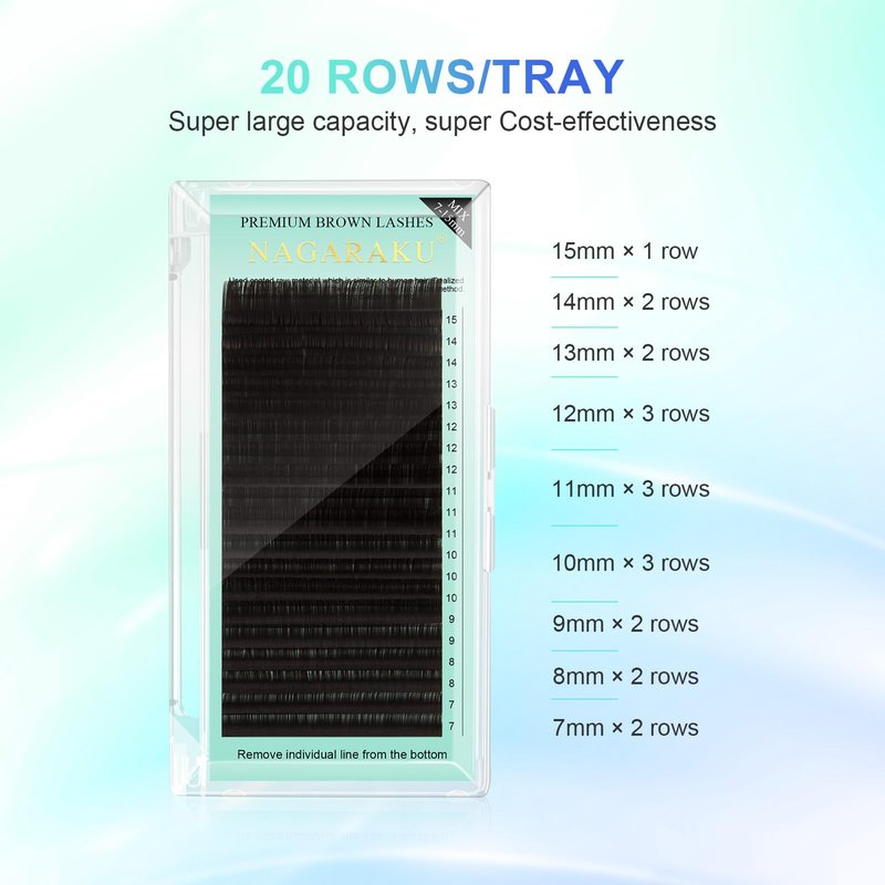NAGARAKU Natural Brown Color Eyelash Extensions 0.07mm C curl 7-15mm Mix Tray Individual Lashes Classic Faux Mink Volume 20 rows Soft Eyelash Supplies