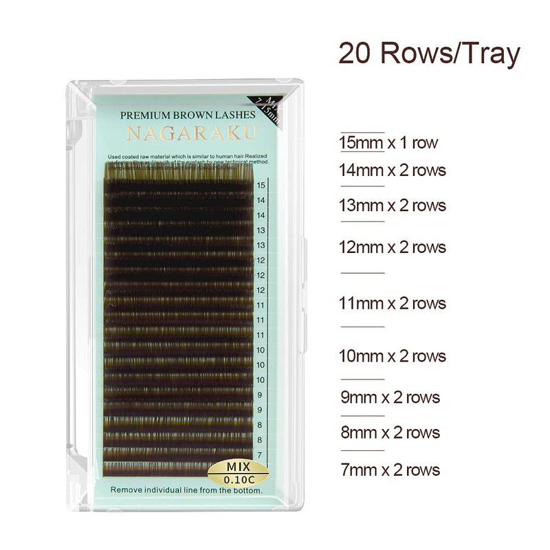 NAGARAKU Natural Brown Color Eyelash Extensions 0.07mm D curl 7-15mm Mix Tray Individual Lashes Classic Faux Mink Volume 20 rows Soft Eyelash Supplies