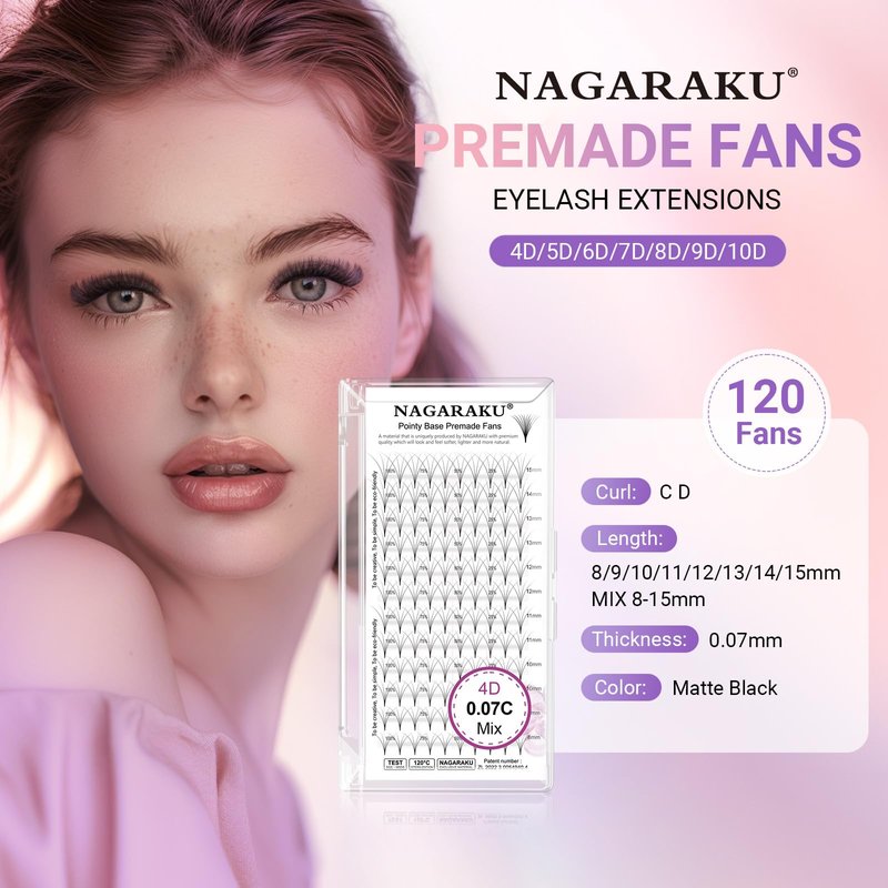 - STABLE CURL: Premade fan eyelashes are made of high-quality PBT material, which are very soft and lightweight. NAGARAKU exclusive material and craftsmanship keep the curl of the eyelash extension longer and no glue residue. Our NAGARAKU special curlstandard can keep stable for more than 2 years.