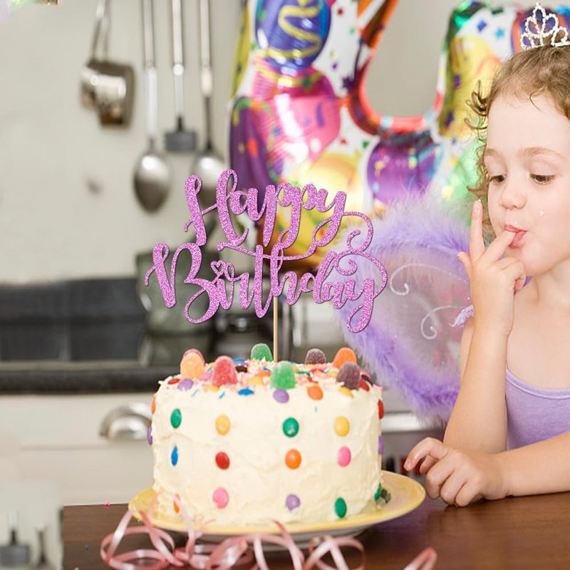 Naicaek Handmade Glitter Happy Birthday Cake Topper,Birthday Party Cake Decorations, Anniversary/Birthday Party Decoration Supplies (Purple)