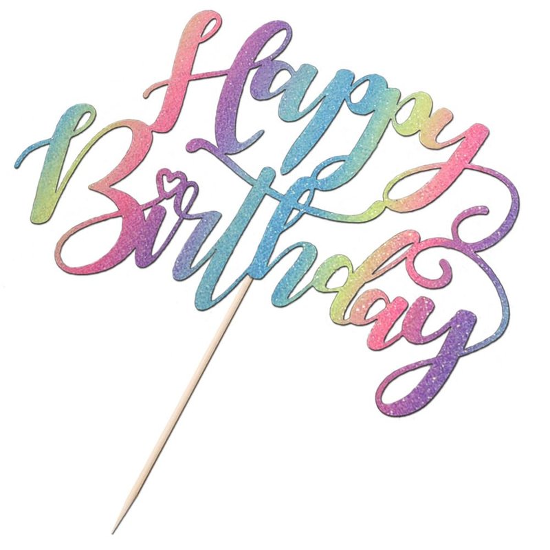 Naicaek Handmade Glitter Happy Birthday Cake Topper,Birthday Party Cake Decorations, Anniversary/Birthday Party Decoration Supplies (Rainbow)