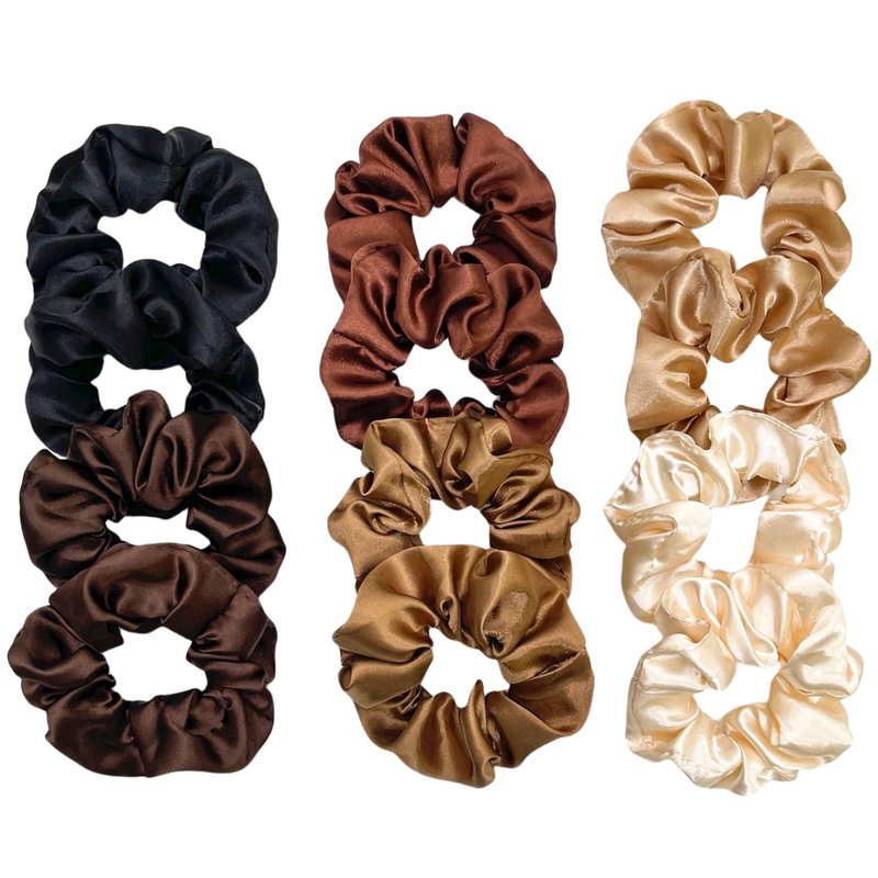 - Material -Silk ponytail,color thick hair ties scrunchies, these hairbands are made of soft and comfortable satin, with a good texture, shiny and comfortable. Each hairbands has stretchable rubber bands that can securely hold your hair in place and are gentle on your hair.