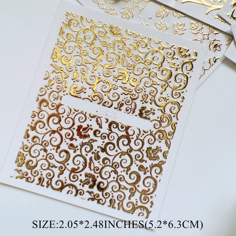NAIL ANGEL 26Sheets Nail Art Adhesive Sticker Sheets Different Gold Color Luxury Shapes Sticker Nail Art Deco 10300