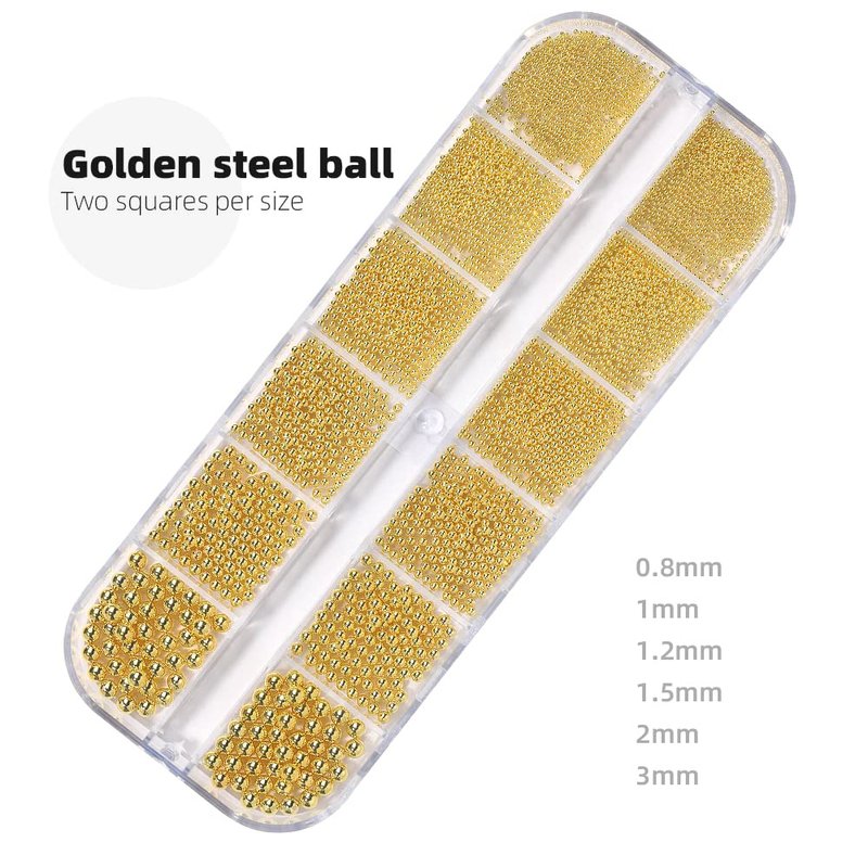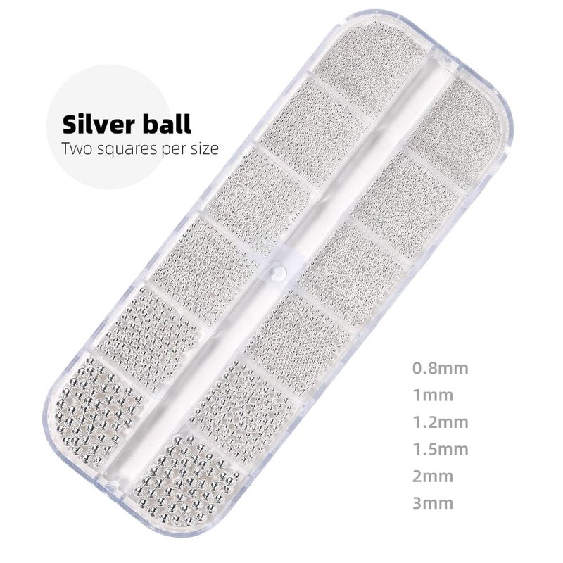 Nail art metal balls, 6 sizes are 0.8mm, 1mm, 1.2mm, 1.5mm, 2mm, 3mm