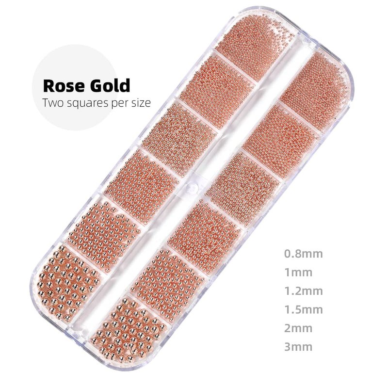 Nail Art Beads Gold Silver Rose Gold Mini Caviar Beads 3D Nail Art Metal Ball Nail Art With Nail Micro Beads Nail Art DIY Craft Decorative Accessories Set