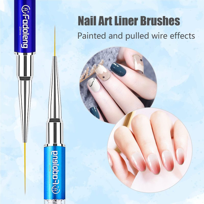 - Usage - Dip the nail art liner brush into an appropriate amount of nail polish and lightly paint on the nails. This thin nail art brush is very suitable for painting flowers and other patterns on the nails. You can outline any desired pattern according to your own needs. The acrylic nail art brush set is suitable for use at home or in the salon.