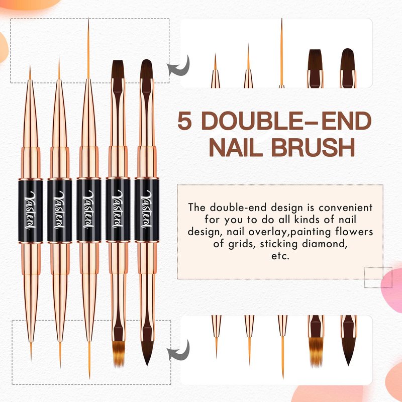 Nail Art Brushes Set - Professional 5pcs Double-Ended Acrylic Nail Art Brushes Liner Detail Thin Brushes for Drawing Design Brushes Gel Builder Brushes 3D Nail Art Tools (Black)
