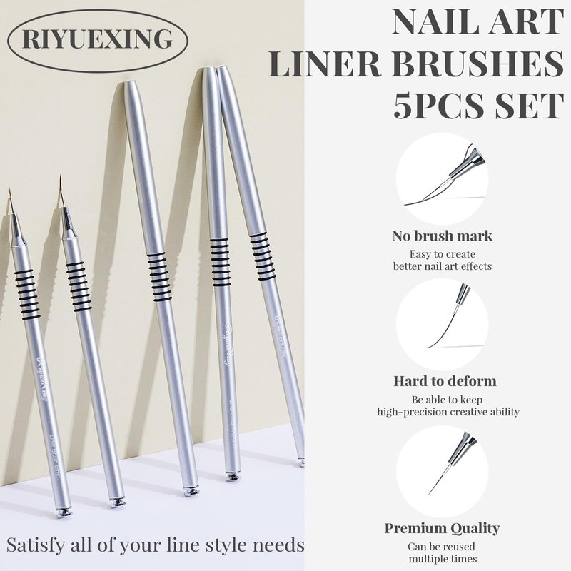 Nail Art Liner Brushes, 5Pcs, Size 5/8/11/15/20mm Nail Art Tools with Striping Nail Art Brushes for Long Lines, Thin Details, Fine Drawing. Striper Brushes Set Christmas Gift for Women
