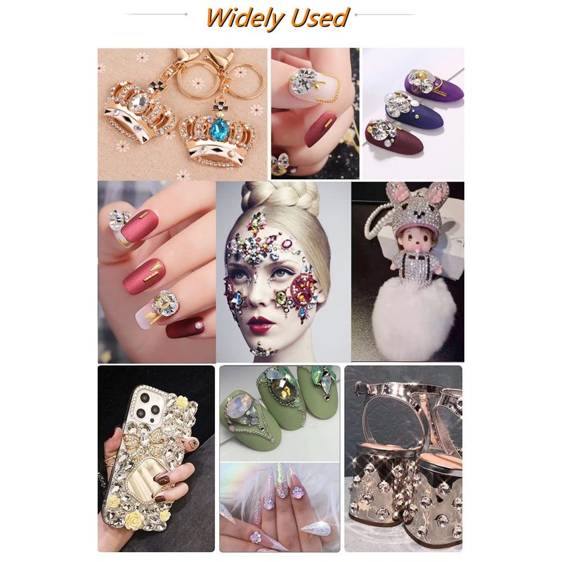 These crystals can be applied to decorate your phone, face, invitation cards, shoes, wedding dress, pen, wallet, manicure, pedicure, etc.