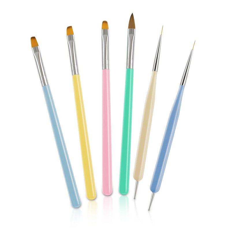 Name:Polygel Nail Brush Set Color:Pink+green+yellow+Baby blue+blue+light brown Material:Wood+aluminum tube+nylon wool Features:【High Quality Materials】This gel polish brush set is made of high-quality wood, aluminum tube, and nylon hair, which is sturdy and durable, well crafted, without shedding hair, and has cute and soft colors. This gel polish brush set comes in a variety of sizes, including different brushes and brush heads for design, and the gel polish brush set is perfect for beginners and professionals. 【Easy to Operate】Each nail brushes for gel nails included in this gel polish brush set is very easy to use, which is very suitable for the creative design of nails and cleaning of gel polished Stratum corneum. These nail brushes for gel nails are also easy to clean and reuse. These nail brushes for gel nails can smoothly brush nails into various beautiful shapes, making them the perfect gift for nail enthusiasts! 【Widely Used】These very practical gel nail brushes can not only be used for professional nail diy design and cleaning the Stratum corneum polished by gel, but also be used for coloring crafts or making an acrylic painting. There are various types of nail pens for different purposes, with good performance, making the gel nail brushes the perfect tool for painting nail! 【Set Includes】This gel brush set includes a round headed pen, carving pen, oblique headed pen, flat headed pen, a double headed point drill pen, and a double headed drawing pen, totaling 6 pens. Meeting all your size and shape needs, the gel brush set is the best gift for birthday parties, Christmas, Mother's Day, and Thanksgiving Day! 【Buy with Confidence】Yuntop is committed to providing customers with quality products and caring services. If you encounter problems such as product damage, please tell us by email in time instead of giving a bad comment immediately. If you are not satisfied with our products, we promise 100% refund. Customers'