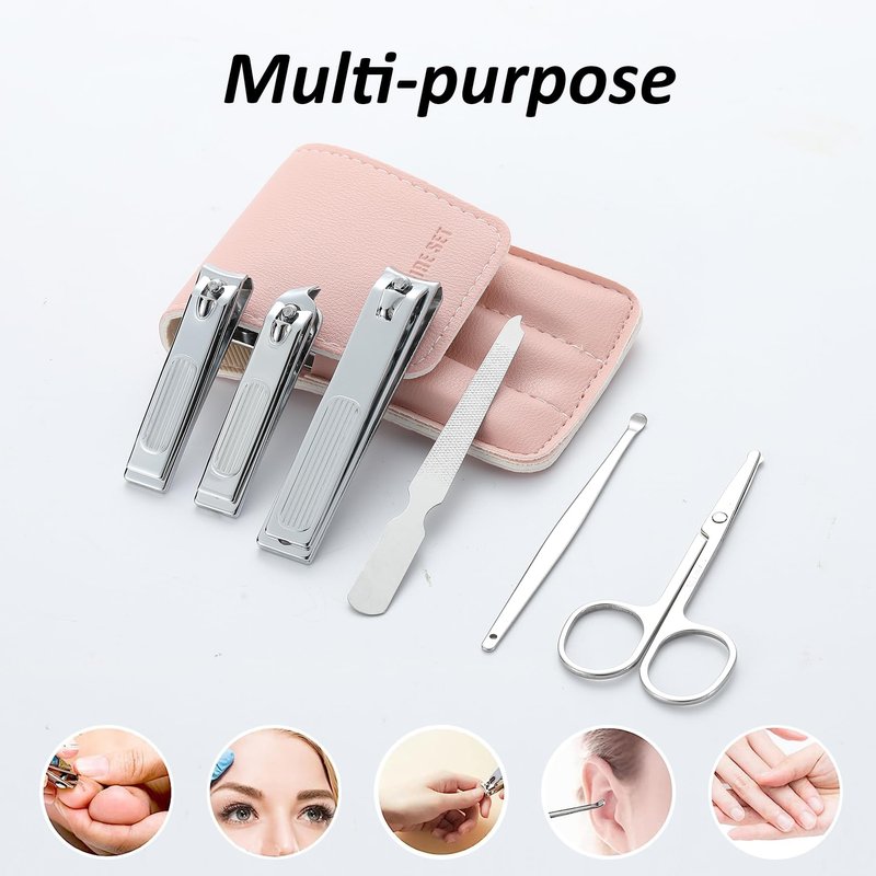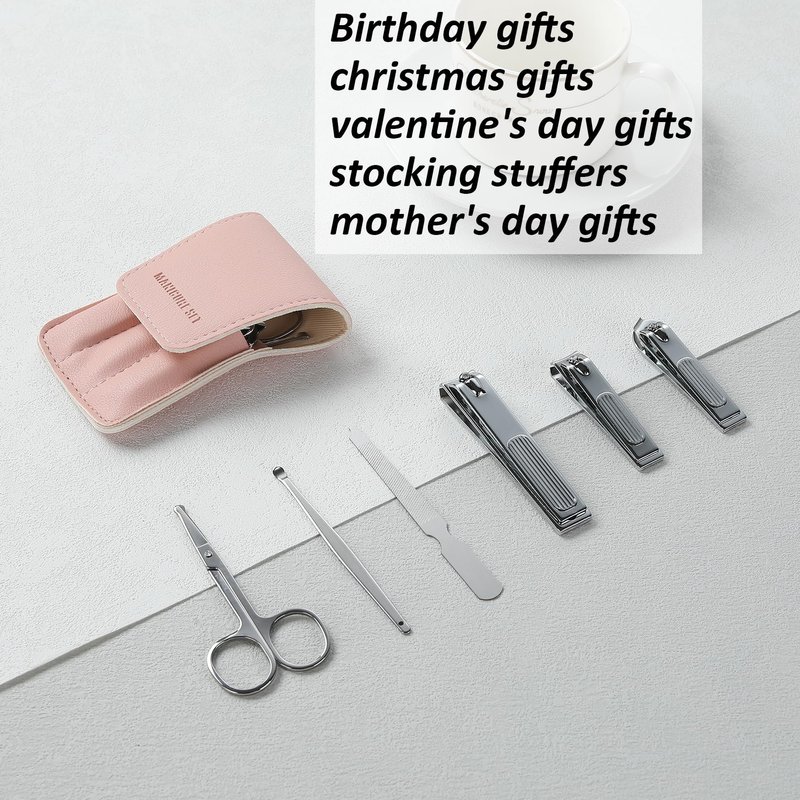 Nail Clipper Set Gifts for Women, 6 Pcs Case Fingernail Clipper Christmas Stocking Stuffers for Adults (Pink)