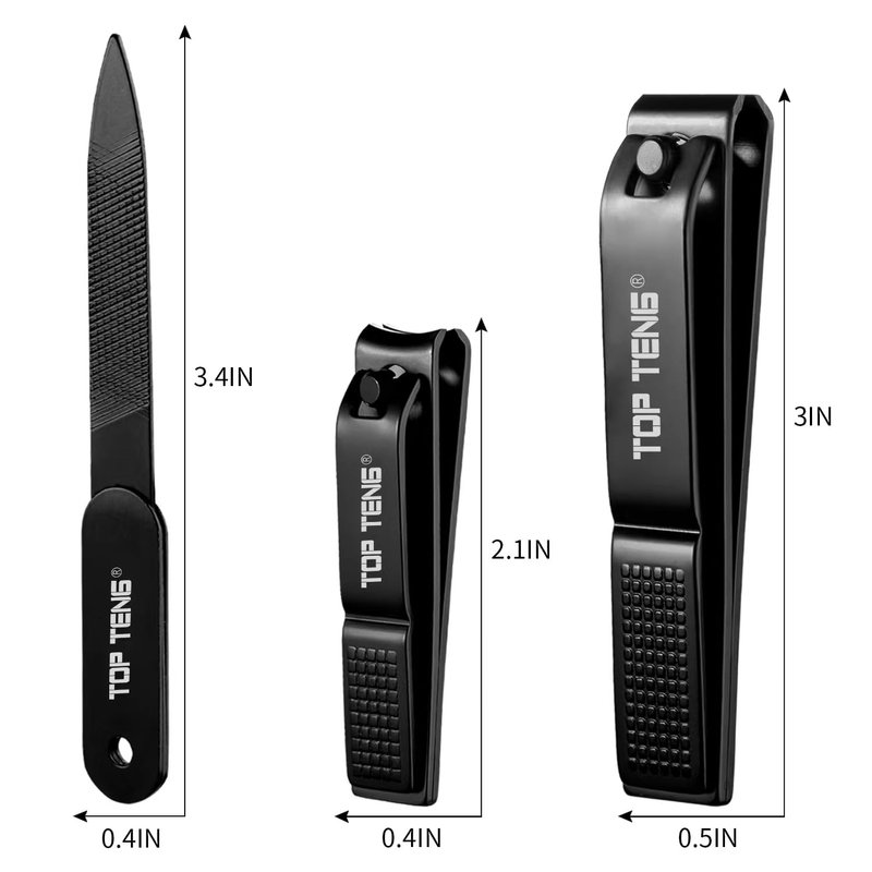 - 3PCS HIGH QUALITY NAIL CLIPPER SET - This is a 3-piece high quality stainless steel nail clippers set. Our nail clipper set comes with a staight edge toeanil clippers, a curved edge fingernail clippers, and a nice high quality nail file, including almost all the necessary tools for trimming nails. You can confidently buy several sets for yourself, friends and family as gifts or stocking stuffers for Christmas.
