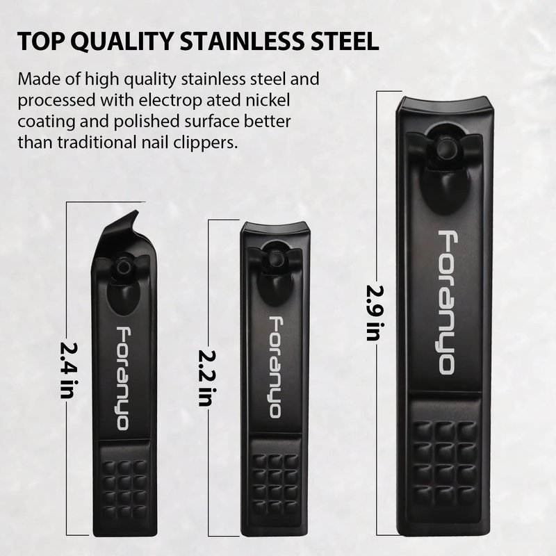 - 👍Friendly Service with Foranyo Nail Clipper -The package includes 3-pack travel black nail cliper with nice case. Your purchase includes extended 30 Days No-Hassle Money Back and free replacement with a 12-Month Warranty.if the nail tools (finger nail clippers adult) you received is missing or broken, please don't hesitate to contact our 24-hour online customer care service,we'll solve it ASAP.Click the "Add to Cart" button now.