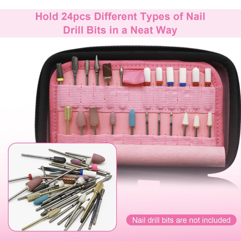 - Large Capacity: Our nail drill organizer has 24 flexible slots with 2 sizes, convenient to hold all kinds of nail drill bits tightly. 3 independent mesh pockets with touch fasteners for store sanding bands, fake nail tips or other small things