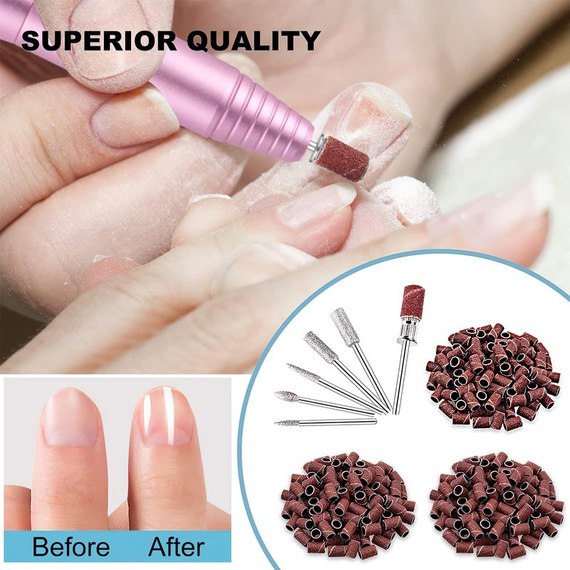 - High Quality:Great material, high hardness, durable and do not fall apart . Come with 100 pieces brown coarse grit 80#, 100 pieces zebra medium grit 120#, 100 pieces black fine grit 180# and 6pcs 3/32 inch professional nail art drill bits