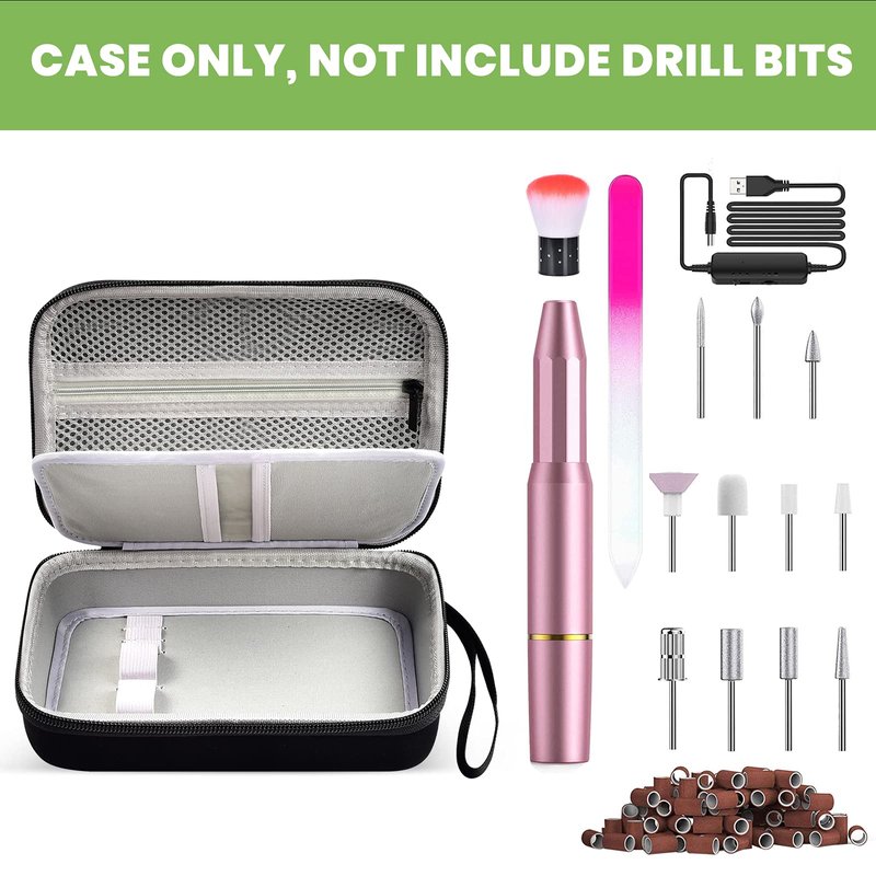 Nail Drill Kit Case, Acrylic Nail Drill Bits Holder Container, Electric Nail Drill Kit Organizer Storage Bag Only