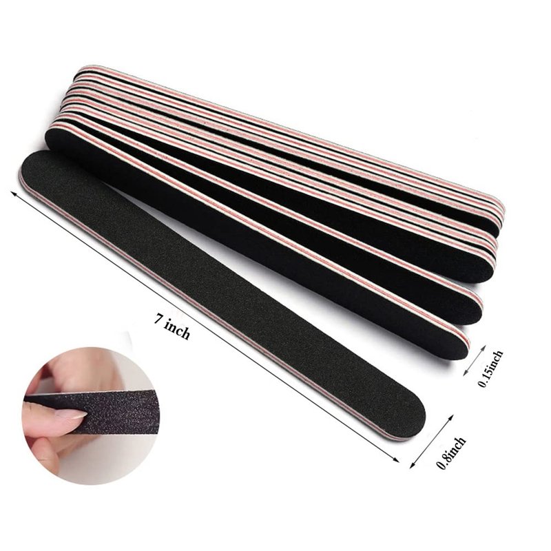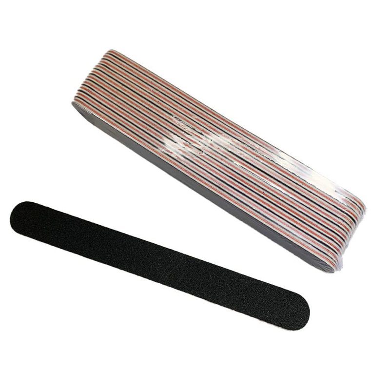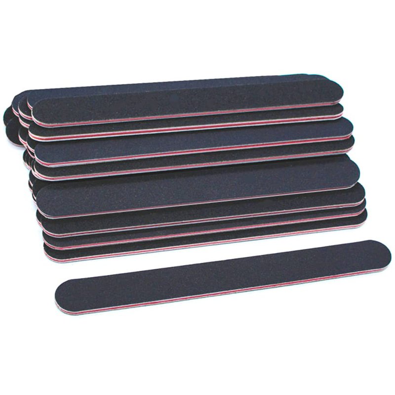 - šćDouble Sided DesignćSalon quality black Nail FilesDouble sided emery boardsļ¼180 Grit fine sand surface, with strong abrasion resistance, is suitable for filing natural nails.100 Grit coarse sand surface, softer,is suitable for filing artificial/crystal nails.