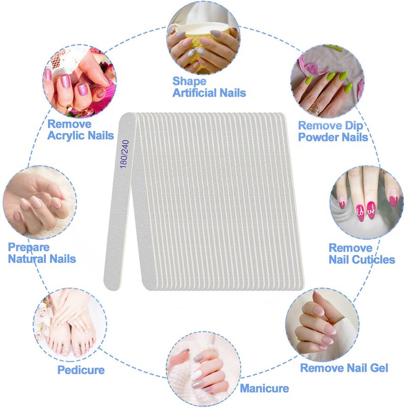 - Double Sided 180/240 Grit: so you can choose based on your preference, where the coarse 180 grit is used to file down the uneven surface of the nail, and the fine 240 grit side used to polish the grease on the nail surface, making it easy to buff and smooth out the rough edges of your nail, ideal for both professionals and at-home users, providing a salon-quality nail buffing experience in the comfort of your own home;