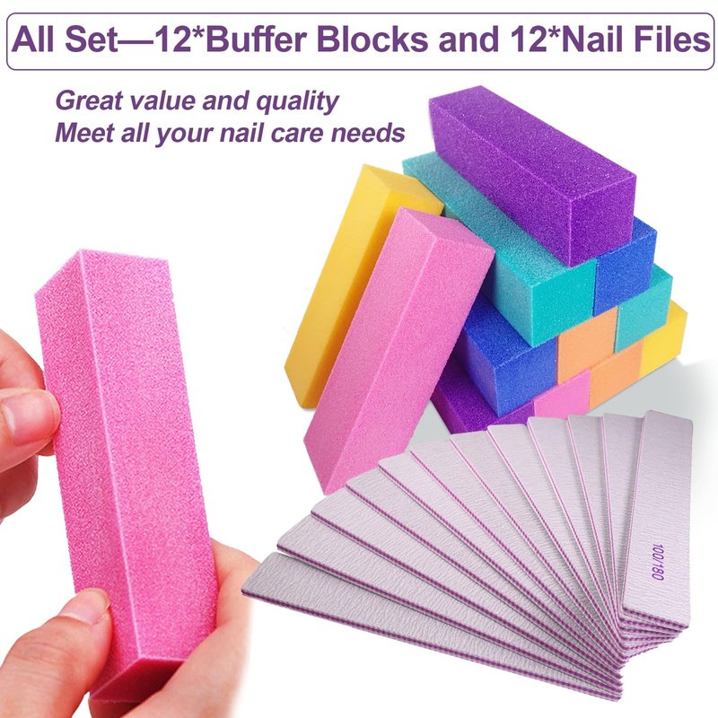 - 24 Pieces Nail Buffers and Files Set: This set includes 12 pieces of nail buffer blocks in 6 colors and 12 pieces of emery board nail files of square shapes. Choose your preferred color and enjoy the versatility of grits and textures for shaping and smooth nails.