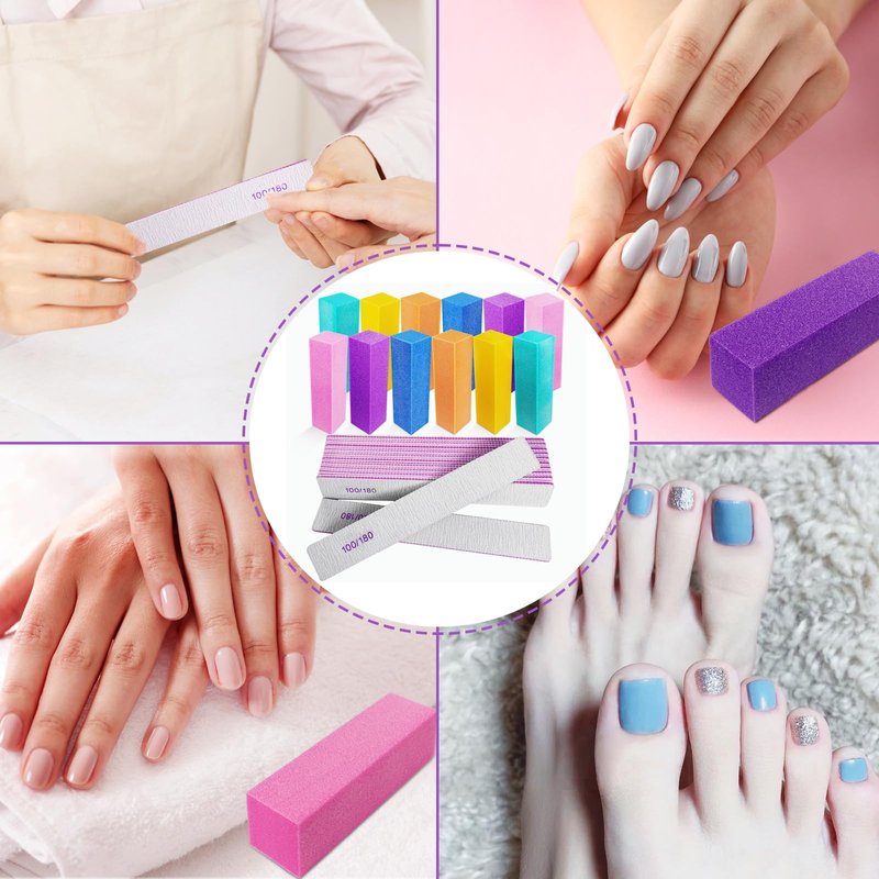 - Nail Buffer Blocks 4 Sided Resilient with 120/180 Grit: Our nail buffing blocks are made of upgraded sand surface sponge, providing high elasticity, durability, and washable/reusable properties. Perfect for polishing and smoothing acrylic nails, fake nail tips, natural nails, dip powder, or gel nails. The medium grit ensures optimal care for your nails, delivering a consistent and pleasant trimming and buffering experience.