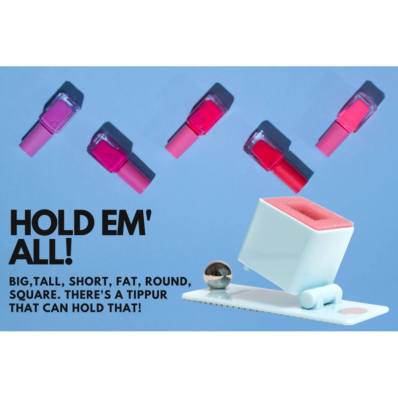 - Anti-Spill and Anti-Tip Design Tippur Nail Polish Holder boasts a grippy secure anti-tip, anti-slip design, ensuring your nail polish sits safely in place at home or on the go. Featuring a non-slip rubber pad and wide, stable base, the Tippur nail polish holder provides the perfect solution for mess-free manicures/pedicures every time. Guaranteed.