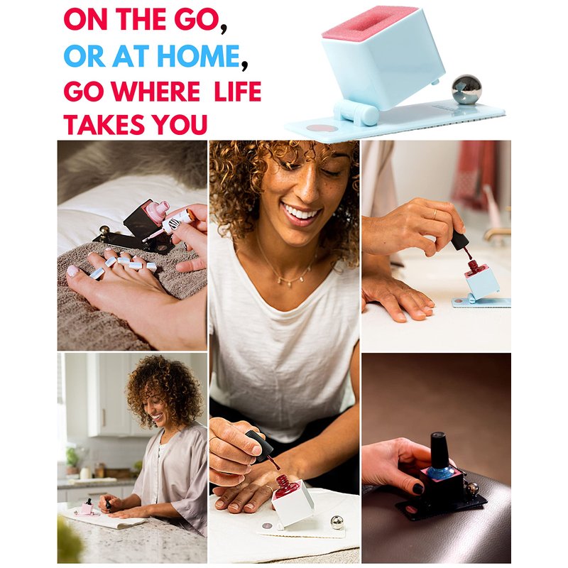 Elevate your nail care routine with the Tippur Nail Polish Holder, the ultimate tool for achieving professional-quality manicures and pedicures. Designed with an anti-spill and anti-tip mechanism, this nail polish holder ensures your nail polish stays secure and mess-free, no matter where you are. The non-slip rubber pad and wide, stable base provide a reliable foundation, making it perfect for use on many surfaces, including your car, bed, or bathroom. Vibrant Colors and Variant Sizes Available in six vibrant colors, the Tippur fingernail polish holder allows you to organize and display your nail polishes in style. Its adjustable hinge lets you tip the holder to the perfect angle, ensuring a smooth, even application every time. Whether you're a professional nail artist or a beginner, this nail stand holder simplifies the process, making it easy to achieve a flawless finish. The Nail Polish Holder's versatility is unmatched. It accommodates various bottle shapes and sizes, from large to small and round to square, providing a stable and convenient solution for all your nail supplies. Style with High-grade Material Supplies Crafted with high-quality materials, the Tippur Nail Polish Holder is built to last. Its low center of gravity and secure hold when tipped provides reliability at it’s best, making it a favorite among professional nail supplies. Experience the difference with the Tippur Nail Polish Holder. Whether you're painting your nails in the car, on the bed, or in the bathroom, this holder's hands-free, anti-spill design ensures a smooth and enjoyable nail care experience. When you see a product that does it all, you just know. Embrace the convenience and reliability of this Nail Polish Holder and transform your nail care routine today.
