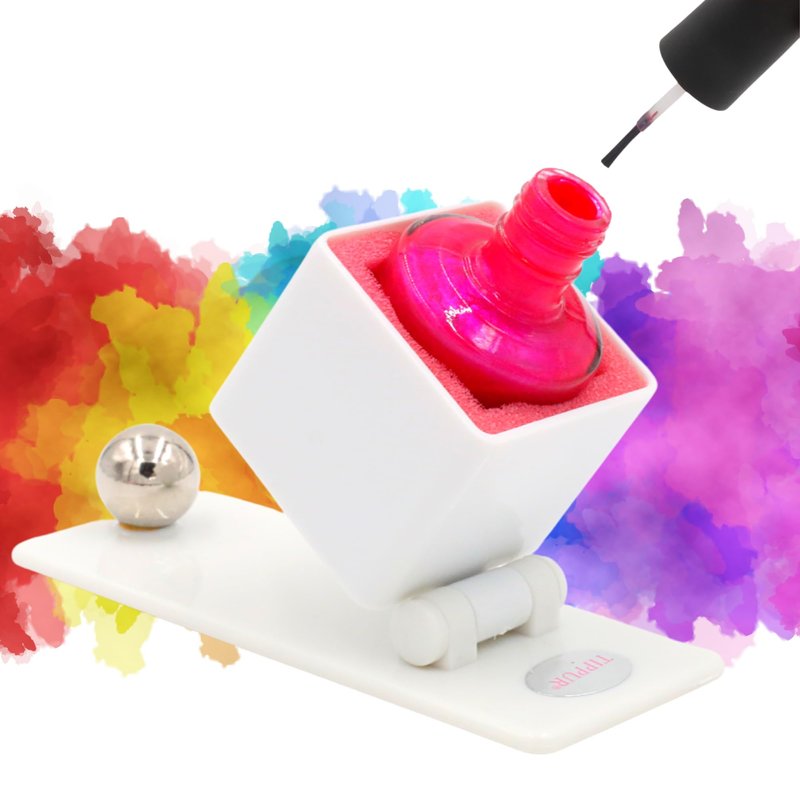 - Anti-Spill and Anti-Tip Design Tippur Nail Polish Holder boasts a grippy secure anti-tip, anti-slip design, ensuring your nail polish sits safely in place at home or on the go. Featuring a non-slip rubber pad and wide, stable base, the Tippur nail polish holder provides the perfect solution for mess-free manicures/pedicures every time. Guaranteed.