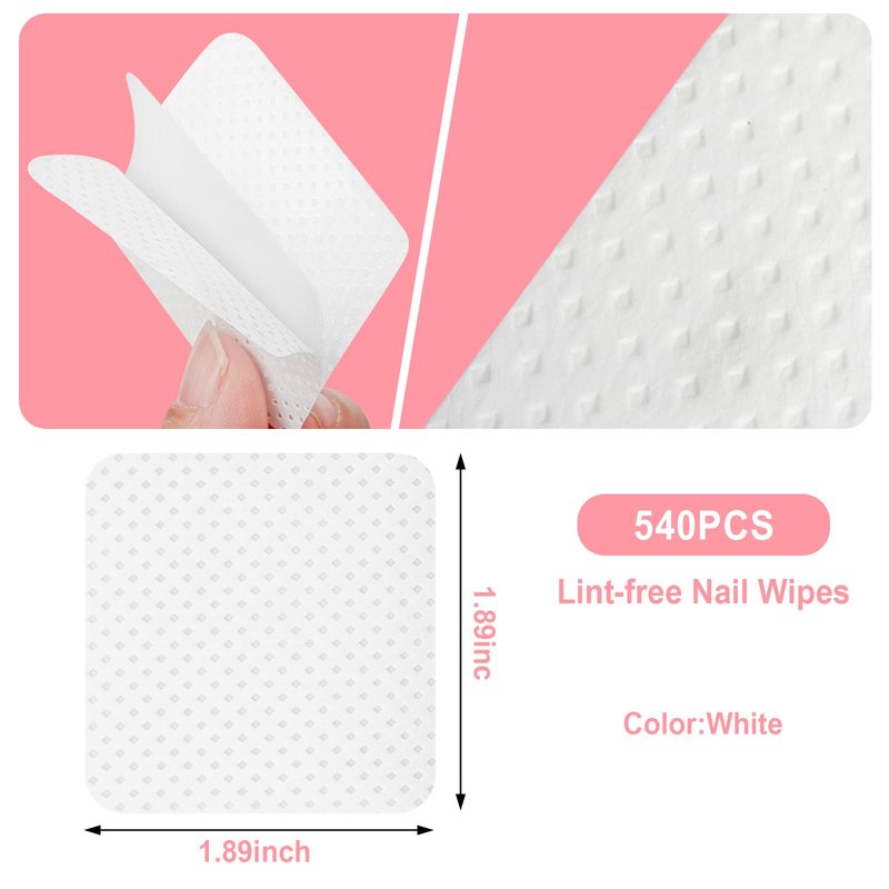 - Lint Free Nail Wipes: 540pcs lint free wipes are good enough for both personal nail care and nail technicians. This will give you plenty of nail wipes to use for regular nail polish application, removal and other nail care tasks