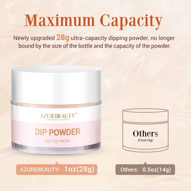 - 🌎【Healthier Formula & Safe for Nails】Added keratin and vitamin E, AZUREBEAUTY dip powder helps enhance nail flexibility. Paraben-free and cruelty-free, harmless, and odor-free, it won't damage your nail beds. It's resistant to chipping and cracking, and water-resistant as well.
