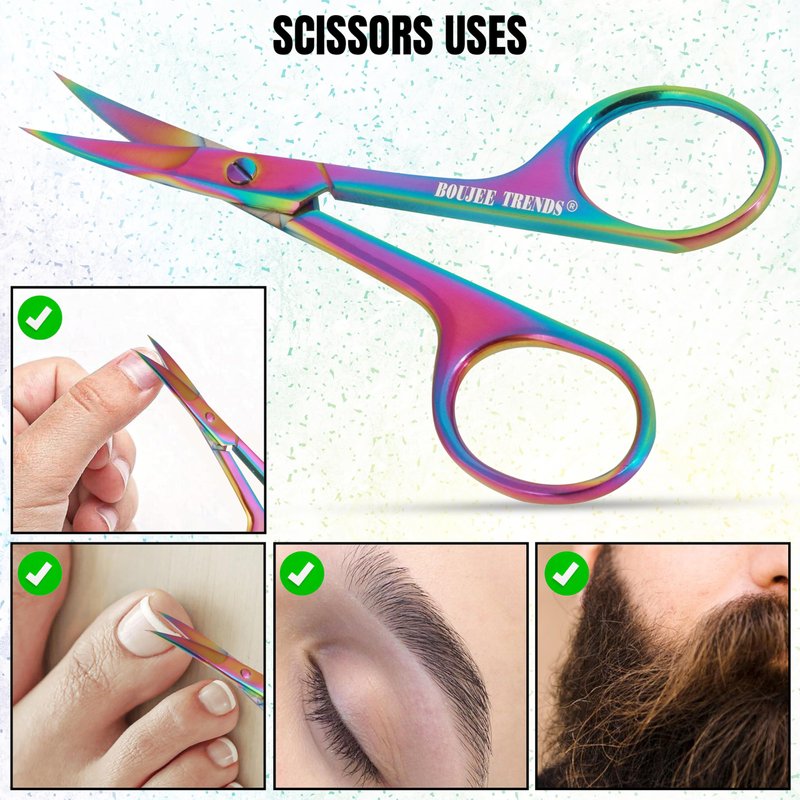 - ✂️ MULTI-PURPOSE SMALL SCISSORS: This functional, smooth curved scissor is used to cut hand nails, for shaping false eyelashes, to pull the nose hair, to trim mustache, beard and grooming eyebrow; It’s a must having grooming tool for both men and women